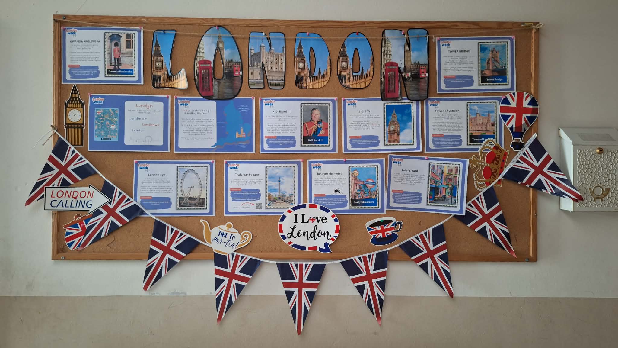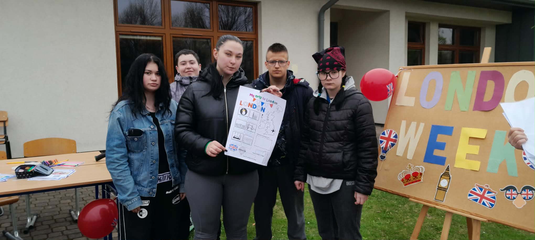 W ramach „London Week” odbył się występ artystyczny, gra terenowa „Explore London – odkryj Londyn”, quiz na temat Londynu, przygotowanie lapbooków oraz wystawa korytarzowa. Uczniowie klasy VII SP i II BS z dużym zaangażowaniem wykonywali zadania – szczególnie spodobało im się poszukiwanie ukrytych kart z informacjami o Londynie na boisku szkolnym